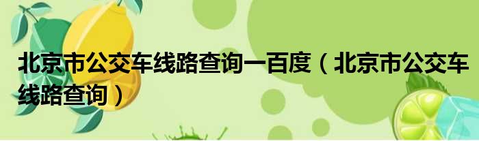 北京市公交车线路查询一百度(北京市公交车线路查询)