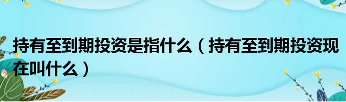 持有至到期投资是指什么(持有至到期投资现在叫什么)