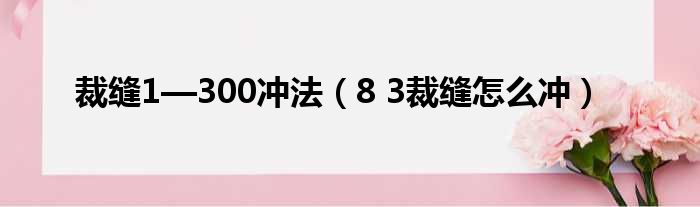 裁缝1—300冲法(8 3裁缝怎么冲)