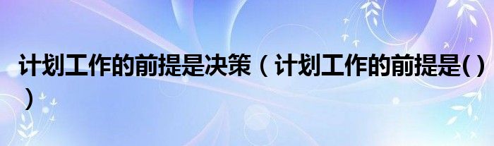 大家好,今天小六子来为大家解答以下的问题,关于计划工作的前提是决策,计划工作的前提是( )这个很多人还不知道,现在让我们一起来看看吧!