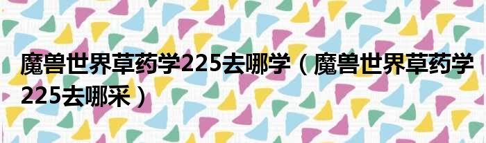 魔兽世界草药学225去哪学(魔兽世界草药学225去哪采)
