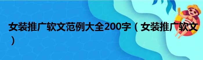 大家好,今天小六子来为大家解答以下的问题,关于女装推广软文范例大全200字,女装推广软文这个很多人还不知道,现在让我们一起来看看吧!