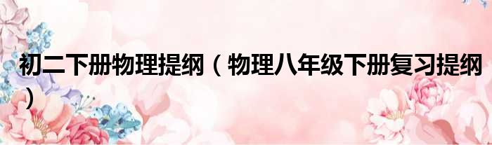 大家好,今天小六子来为大家解答以下的问题,关于初二下册物理提纲,物理八年级下册复习提纲这个很多人还不知道,现在让我们一起来看看吧!