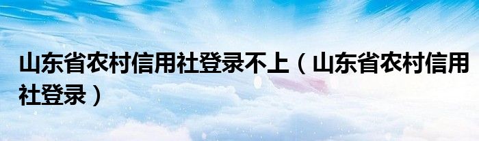 山东省农村信用社登录不上(山东省农村信用社登录)