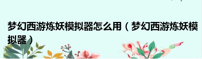 梦幻西游炼妖模拟器怎么用(梦幻西游炼妖模拟器)