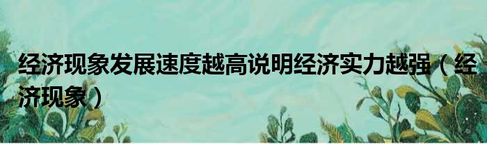 经济现象发展速度越高说明经济实力越强(经济现象)