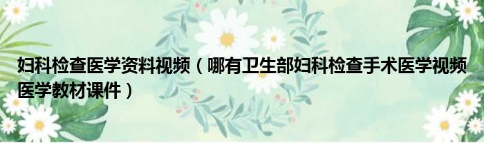 妇科检查医学资料视频(哪有卫生部妇科检查手术医学视频医学教材课件)