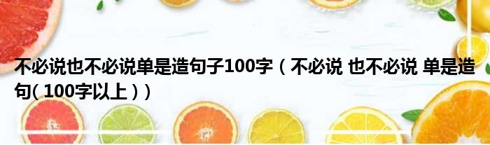不必说也不必说单是造句子100字(不必说 也不必说 单是造句( 100字以上 ))