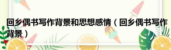 回乡偶书写作背景和思想感情(回乡偶书写作背景)