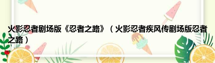 火影忍者剧场版《忍者之路》(火影忍者疾风传剧场版忍者之路)