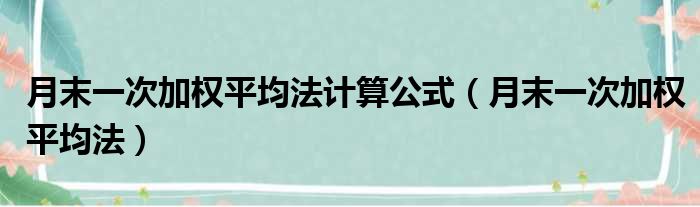 导读 大家好,今天小六子来为大家解答以下的问题,关于月末一次加权平均法计算公式,月末一次加权平均法这个很多人还不知道,现在让我们一起来看