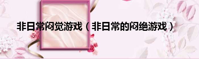 大家好,今天小六子来为大家解答以下的问题,关于非日常闷觉游戏,非日常的闷绝游戏这个很多人还不知道,现在让我们一起来看看吧!