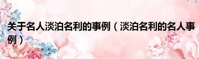 关于名人淡泊名利的事例(淡泊名利的名人事例)