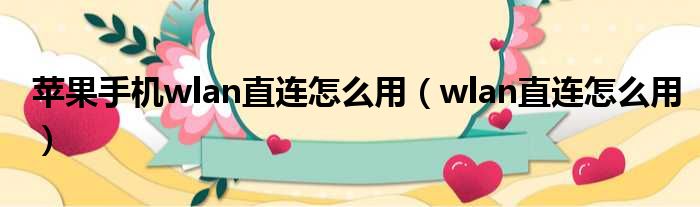 苹果手机wlan直连怎么用(wlan直连怎么用)