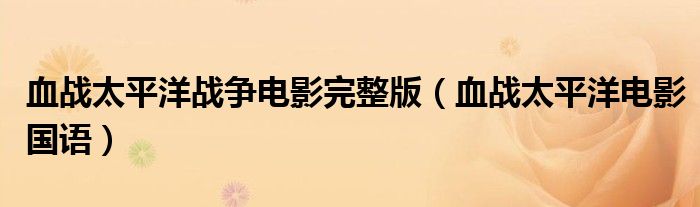 血战太平洋战争电影完整版(血战太平洋电影国语)