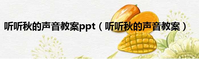 大家好,今天小六子来为大家解答以下的问题,关于听听秋的声音教案ppt,听听秋的声音教案这个很多人还不知道,现在让我们一起来看看吧!