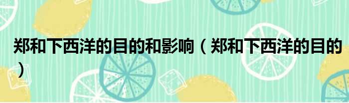 郑和下西洋的目的和影响(郑和下西洋的目的)