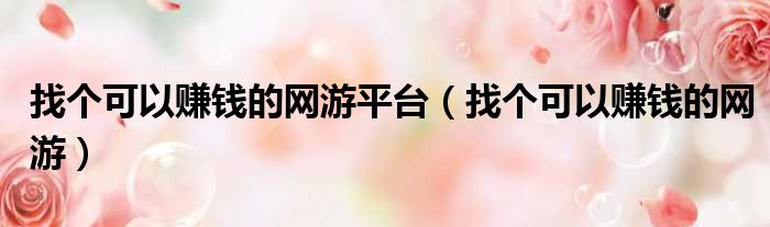 找个可以赚钱的网游平台(找个可以赚钱的网游)