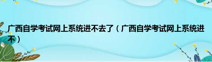 导读 大家好,今天小六子来为大家解答以下的问题,关于广西自学考试网上系统进不去了,广西自学考试网上系统进不这个很多人还不知道,现在让我们