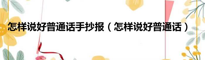 大家好,今天小六子来为大家解答以下的问题,关于怎样说好普通话手抄报,怎样说好普通话这个很多人还不知道,现在让我们一起来看看吧!