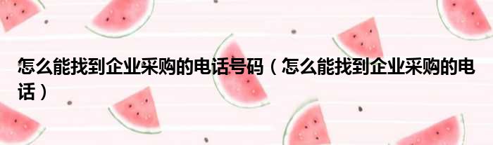 怎么能找到企业采购的电话号码(怎么能找到企业采购的电话)