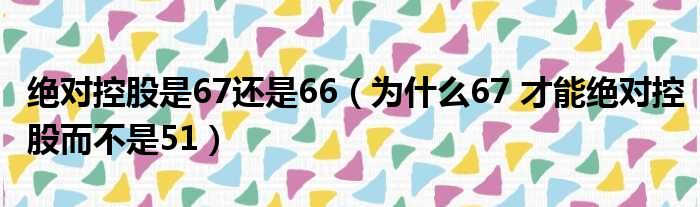 导读 大家好,今天小六子来为大家解答以下的问题,关于绝对控股是67还是66,为什么67 才能绝对控股而不是51这个很多人还不知道,现在让我们一起