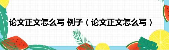 大家好,今天小六子来为大家解答以下的问题,关于论文正文怎么写 例子,论文正文怎么写这个很多人还不知道,现在让我们一起来看看吧!