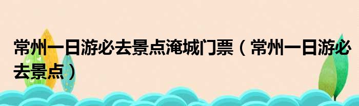 导读 大家好,今天小六子来为大家解答以下的问题,关于常州一日游必去景点淹城门票,常州一日游必去景点这个很多人还不知道,现在让我们一起来看