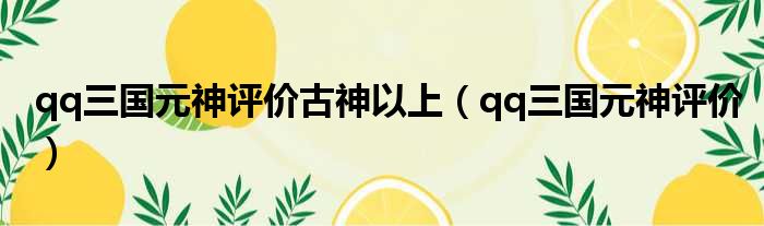 大家好,今天小六子来为大家解答以下的问题,关于qq三国元神评价古神以上,qq三国元神评价这个很多人还不知道,现在让我们一起来看看吧!