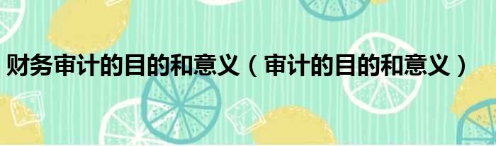 导读 大家好,今天小六子来为大家解答以下的问题,关于财务审计的目的和意义,审计的目的和意义这个很多人还不知道,现在让我们一起来看看吧!1、