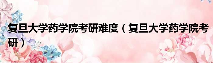 导读 大家好,今天小六子来为大家解答以下的问题,关于复旦大学药学院考研难度,复旦大学药学院考研这个很多人还不知道,现在让我们一起来看看吧