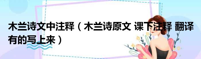 大家好,今天小六子来为大家解答以下的问题,关于木兰诗文中注释,木兰诗原文 课下注释 翻译 有的写上来这个很多人还不知道,现在让我们一起来看看吧!