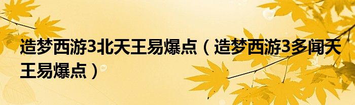 造梦西游3北天王易爆点(造梦西游3多闻天王易爆点)