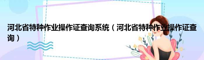 河北省特种作业操作证查询系统(河北省特种作业操作证查询)