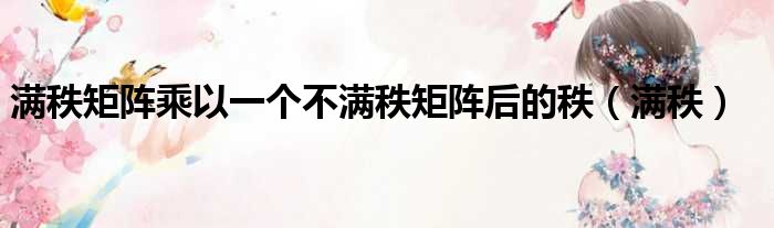 导读 大家好,今天小六子来为大家解答以下的问题,关于满秩矩阵乘以一个不满秩矩阵后的秩,满秩这个很多人还不知道,现在让我们一起来看看吧!1、