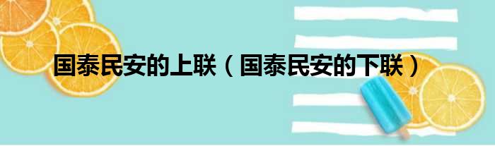 大家好,今天小六子来为大家解答以下的问题,关于国泰民安的上联,国泰民安的下联这个很多人还不知道,现在让我们一起来看看吧!