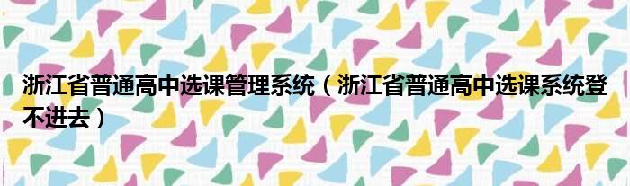 浙江省普通高中选课管理系统(浙江省普通高中选课系统登不进去)