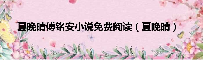 大家好,今天小六子来为大家解答以下的问题,关于夏晚晴傅铭安小说免费阅读,夏晚晴这个很多人还不知道,现在让我们一起来看看吧!