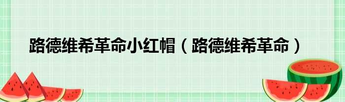 导读 大家好,今天小六子来为大家解答以下的问题,关于路德维希革命小红帽,路德维希革命这个很多人还不知道,现在让我们一起来看看吧!1、路德维