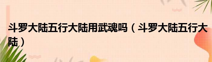 斗罗大陆五行大陆用武魂吗(斗罗大陆五行大陆)