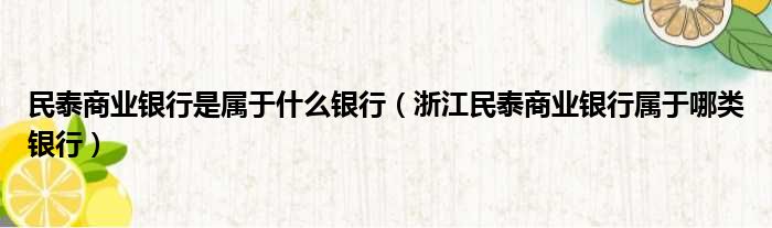 民泰商业银行是属于什么银行(浙江民泰商业银行属于哪类银行)