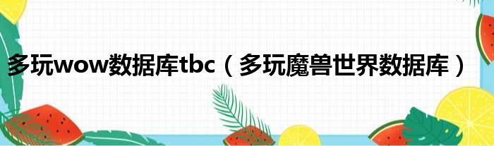 多玩wow数据库tbc(多玩魔兽世界数据库)