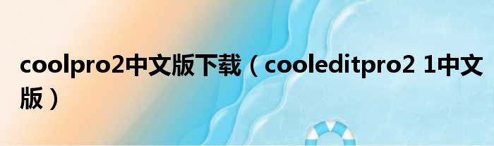 导读 大家好,今天小六子来为大家解答以下的问题,关于coolpro2中文版下载,cooleditpro2 1中文版这个很多人还不知道,现在让我们一起来看看吧!