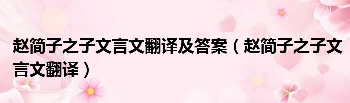 导读 大家好,今天小六子来为大家解答以下的问题,关于赵简子之子文言文翻译及答案,赵简子之子文言文翻译这个很多人还不知道,现在让我们一起来
