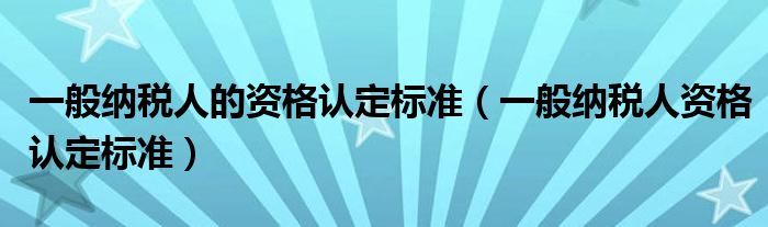 一般纳税人的资格认定标准(一般纳税人资格认定标准)
