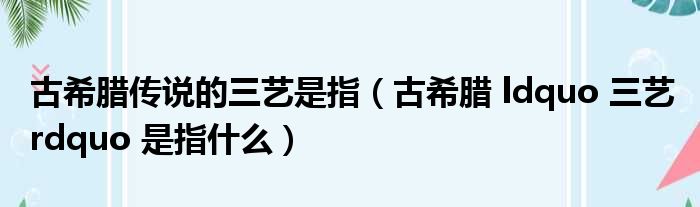 古希腊传说的三艺是指(古希腊 ldquo 三艺 rdquo 是指什么)