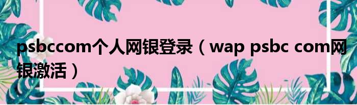 导读 大家好,今天小六子来为大家解答以下的问题,关于psbccom个人网银登录,wap psbc com网银激活这个很多人还不知道,现在让我们一起来看看吧