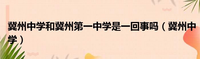 冀州中学和冀州第一中学是一回事吗(冀州中学)