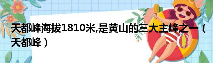 导读 大家好,今天小六子来为大家解答以下的问题,关于天都峰海拔1810米,是黄山的三大主峰之一,天都峰这个很多人还不知道,现在让我们一起来看看