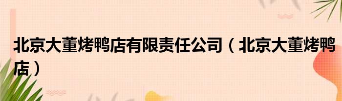 北京大董烤鸭店有限责任公司(北京大董烤鸭店)